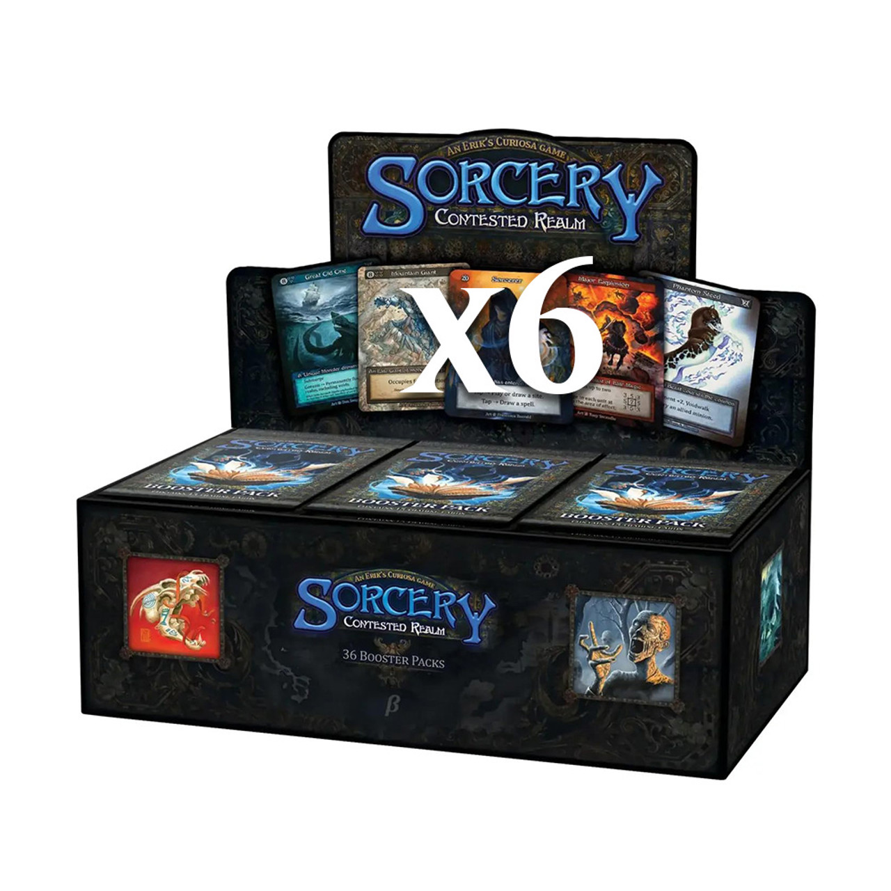 The Sorcery: Contested Realm Beta Edition booster case contains 6 booster boxes, each with 36 booster packs